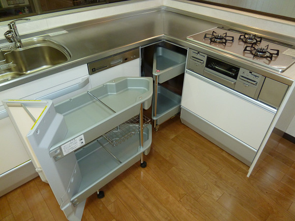 キッチン:クリンナップ製クリンレディ L型2400×1650 自動昇降機、コーナーキャビネット、プラズマクラスター&重曹コース付サイレントダブル除菌スチーム食器洗乾燥機搭載。 床フロアー:ブラックチェリー色 一部電気式床暖房。